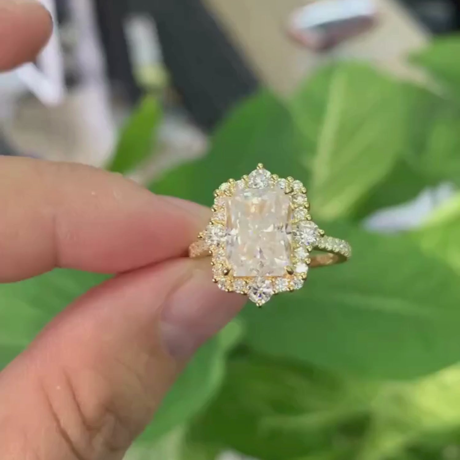 YLVA | Radiant Cut Halo Moissanite Engagement Ring
