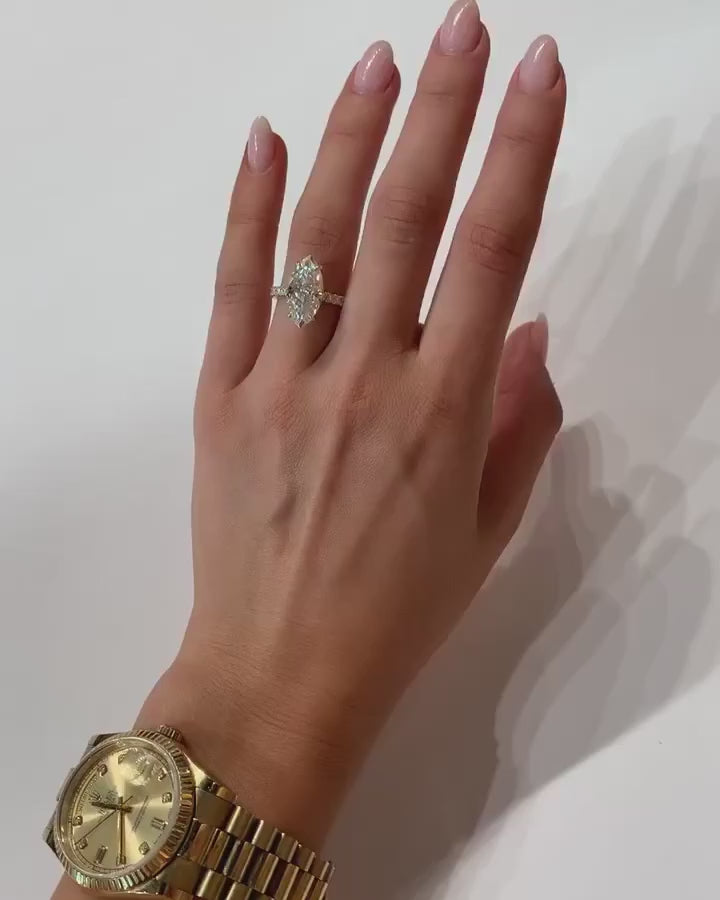 Style: Crushed Ice Marquise Cut Prong Setting Moissanite