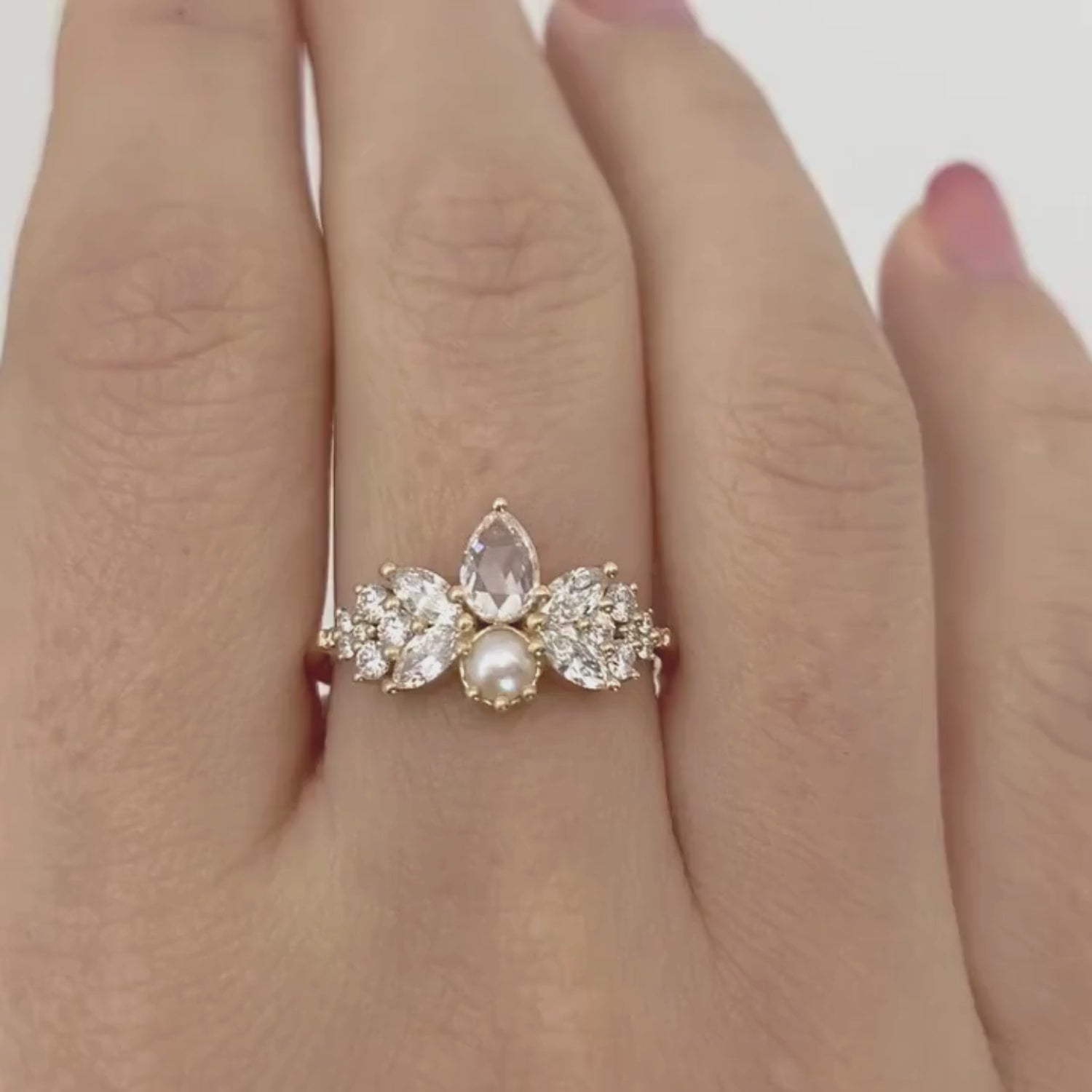 FAIRYTALE | Whimsical Engagement Ring - 1ct Pear Rose Cut + Fresh Water Pearl
